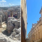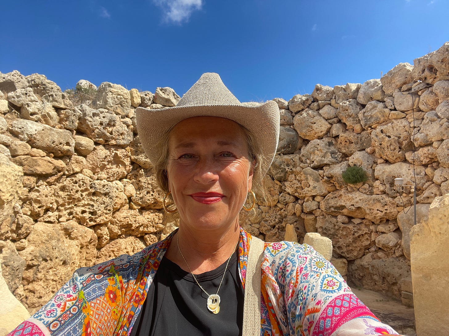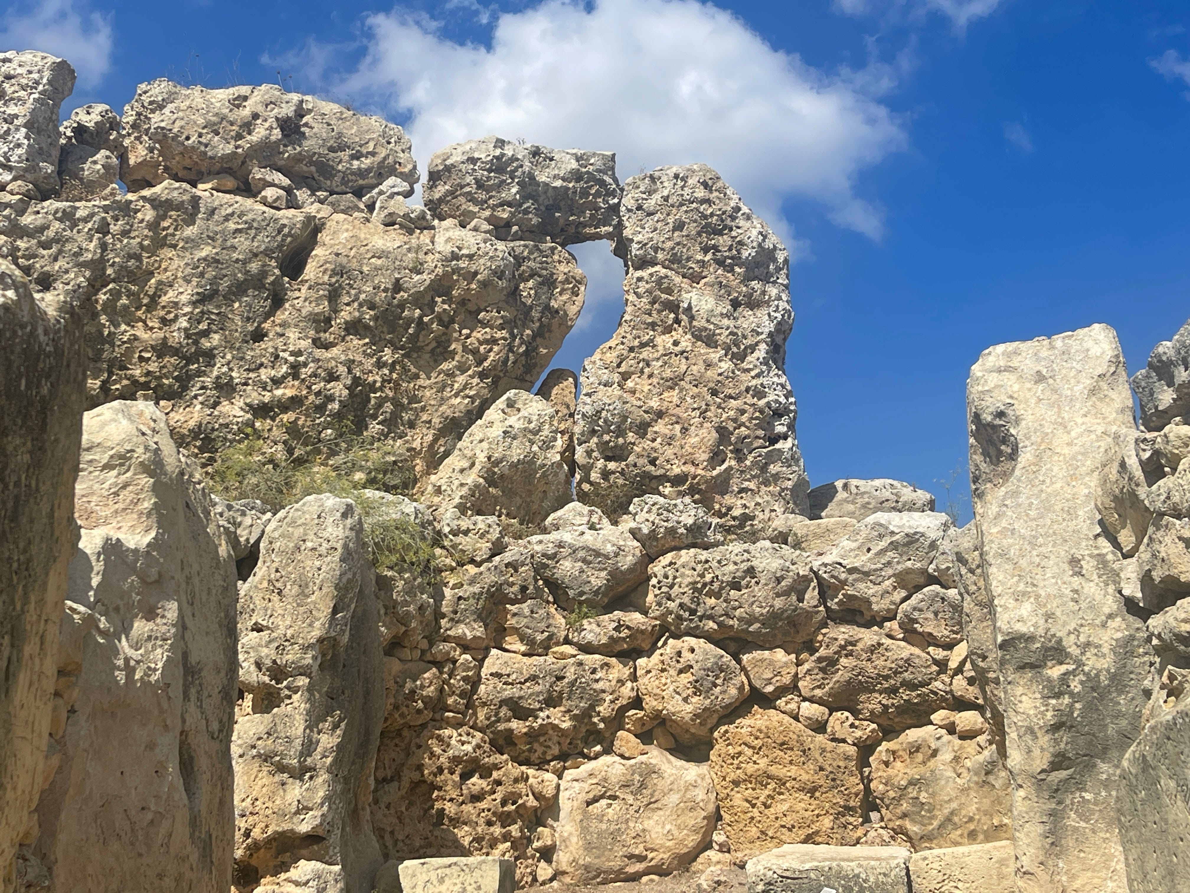 Here in Malta, I’ve gotten to do ceremony in at least seven sacred temples from a matriarchal timeline, thanks to Jennifer Berezan, the amazing musician and guide. Thank you, Jennifer. In these sacred sites, art and tools were found 6,000 years old, but no weapons, no violence, no harm to the women’s bodies. History doesn’t know where this culture of temple builders went. They just disappeared, and there’s no sign, no trace besides their art and their megalithic temples. When I first arrived here, I felt like one of them, a temple builder on my current timeline because I’ve kept temple spaces since my early 30s. The local legend says the giantess is said to have built the temple at Ggantia in one day with a baby on her back while eating honey and magic beans. That’s on the island of Gozo.